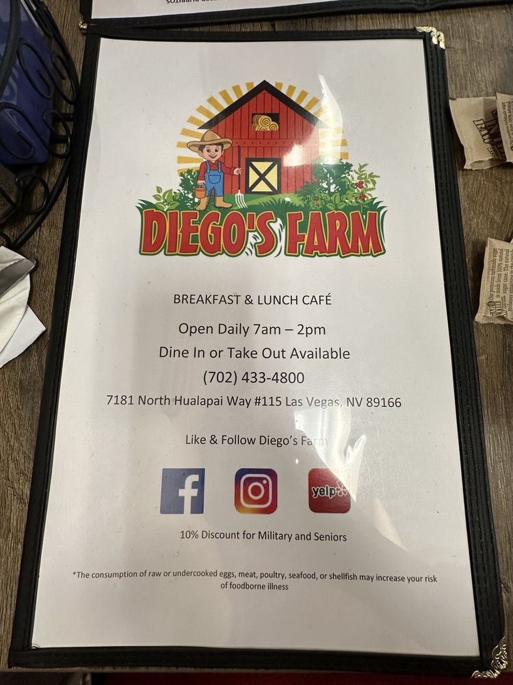 Welcome to Diego’s Farm, a delightful breakfast and brunch nook located at 7181 N Hualapai Way in Las Vegas, NV. This charming eatery is famed for its mouthwatering sandwiches and brunch options, ensuring a cozy atmosphere where guests can savor home-cooked flavors.